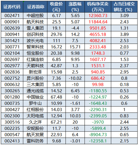 龙虎榜机构净买入12股中超控股居首